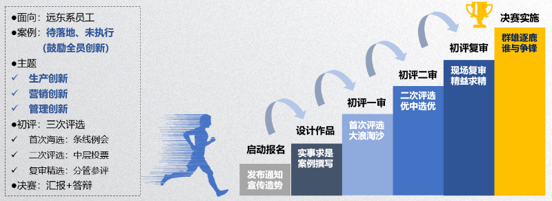 在遠東,人人關注創(chuàng)新,人人愿意創(chuàng)新。多年來,公司內部一直在營造創(chuàng)新環(huán)境,努力提升員工創(chuàng)新能力。設計創(chuàng)新案例競賽的目標是希望通過“提煉問題、分析問題、解決問題、助推經(jīng)營管理”四個核心維度,每年選拔出一些優(yōu)質案例,幫助企業(yè)創(chuàng)新變革。